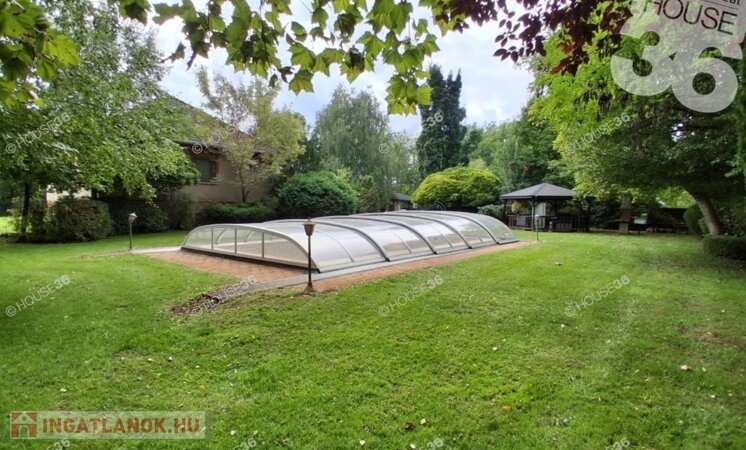 - 3.000 m2 parkosított, automata öntöző rendszerrel, fűthető-fedett medencével, kerti saletli kemencével, elektromos kapuval ellátott területen