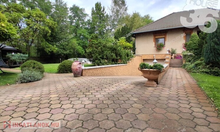 - 3.000 m2 parkosított, automata öntöző rendszerrel, fűthető-fedett medencével, kerti saletli kemencével, elektromos kapuval ellátott területen