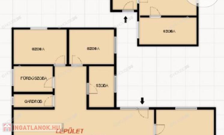 1 nagyméretű szoba / akár ketté osztható/ + 2 szoba+ 1 kis szoba+ mosókonyha