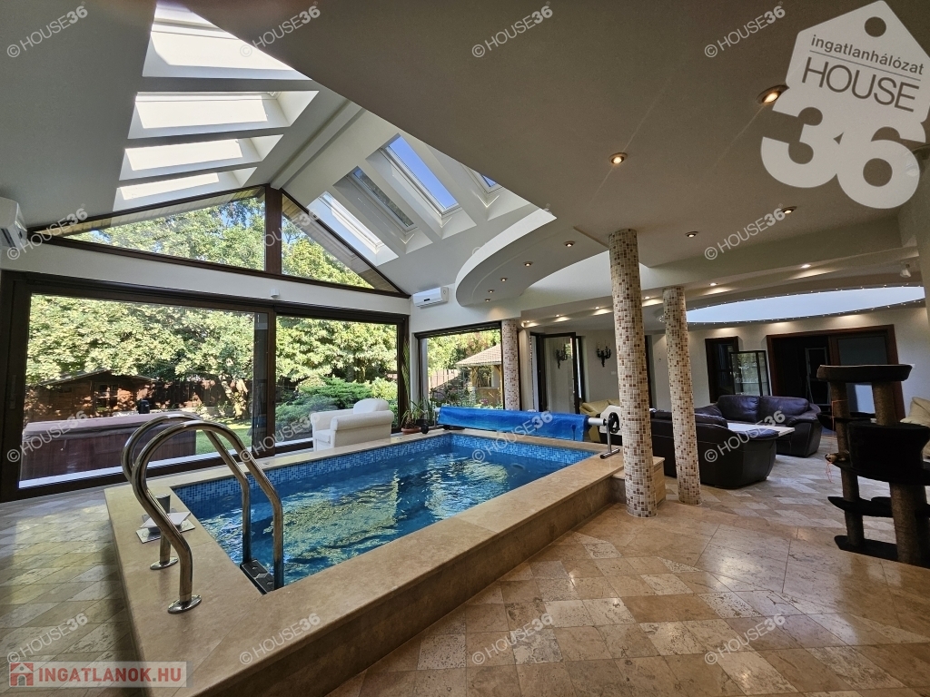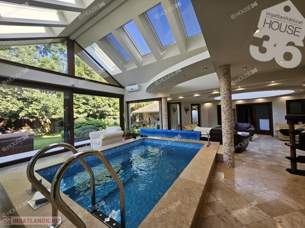 Kecskemét egyik legjobb utcájában, a Vacsiközben, 1166 m2-es dupla telken, kb.300 m2-es, tetőtér beépítéses, 2 nappali + 5 szoba + 2 fürdőszobás, igényesen berendezett és nívós anyagokból épült (mészkő, extra szigetelés), minden igényt-és extrát kielégítő luxus családi ház eladó!