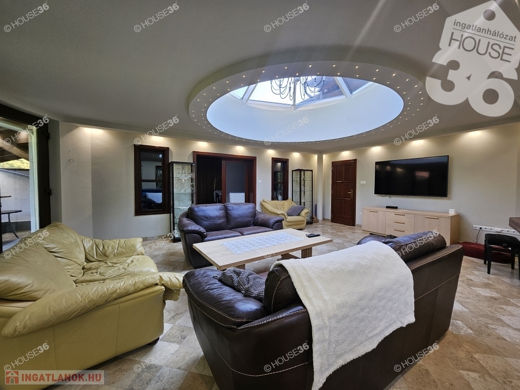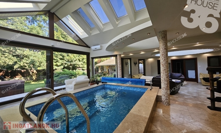 Kecskemét egyik legjobb utcájában, a Vacsiközben, 1166 m2-es dupla telken, kb.300 m2-es, tetőtér beépítéses, 2 nappali + 5 szoba + 2 fürdőszobás, igényesen berendezett és nívós anyagokból épült (mészkő, extra szigetelés), minden igényt-és extrát kielégítő luxus családi ház eladó!