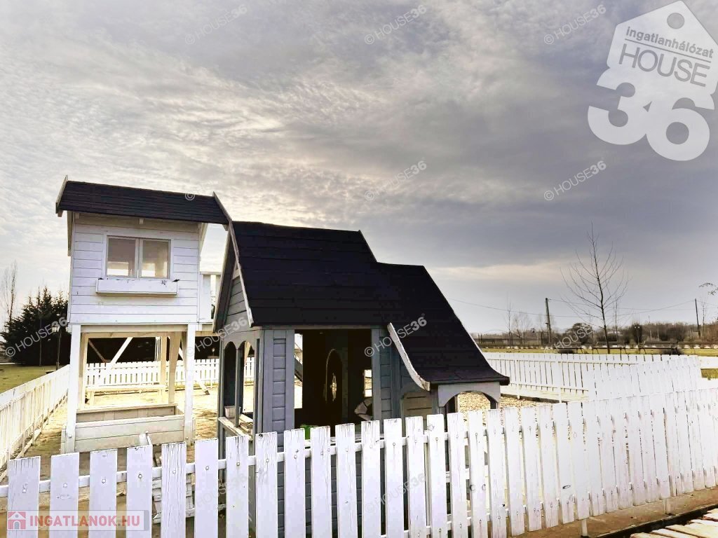 Játszótér, babaházzal, csúszdával, hintákkal, aszfaltozott görkorcsolya/roller pálya készült