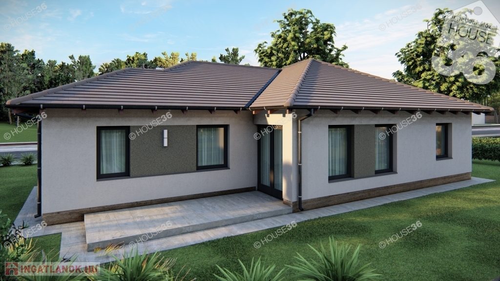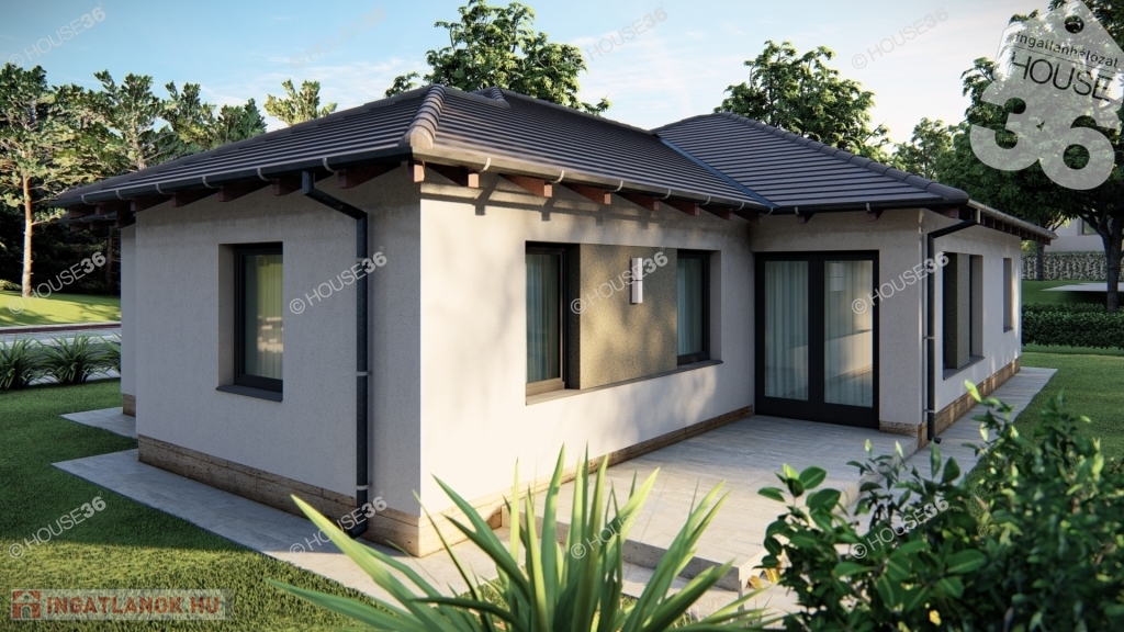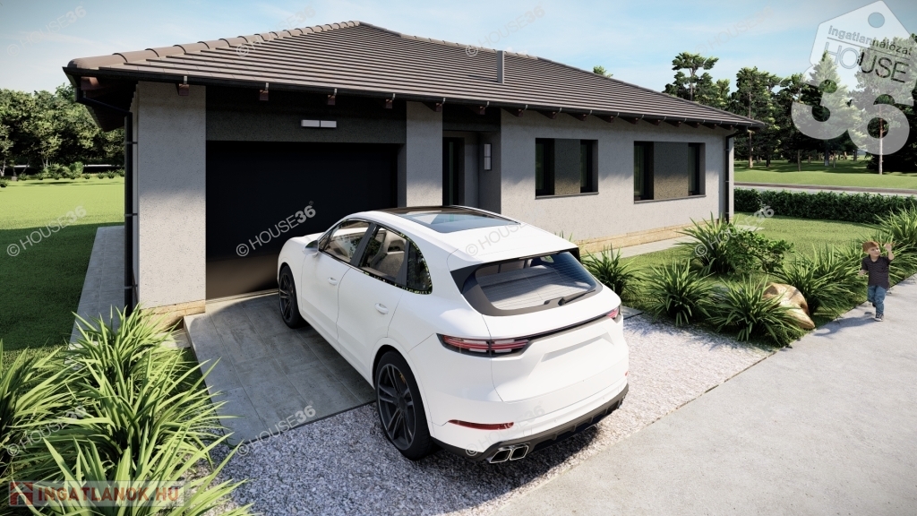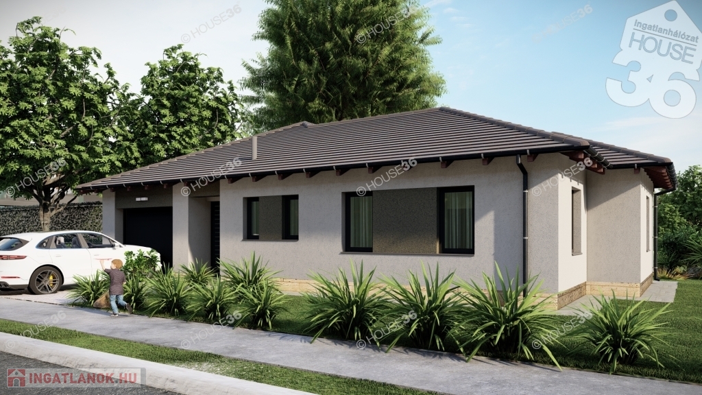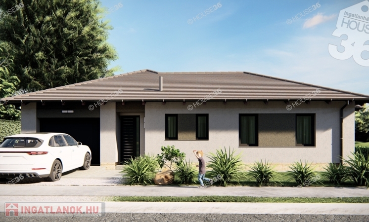 Földszintes kialakítású családi ház, nettó 129,18 nm hasznos lakótérrel, +13,33 nm terasszal, valamint egybeállós garázzsal.