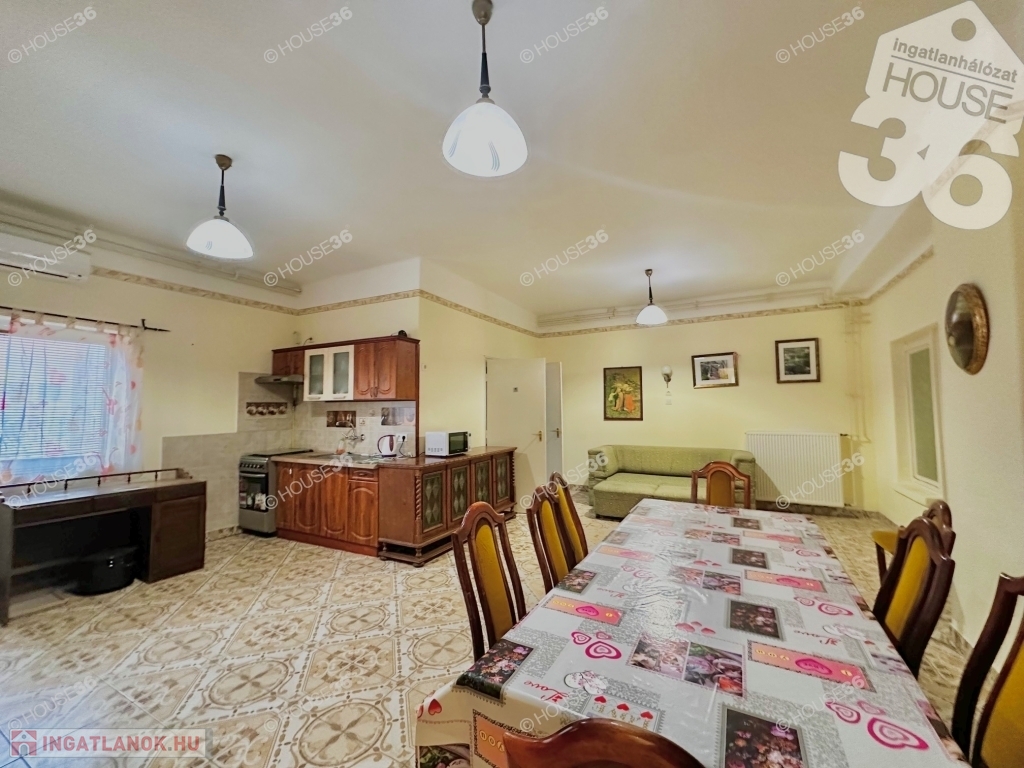 3. lakórész: előtér, étkező, konyha, fürdő és 2 db külön WC, 4 külön nyíló szoba.Megközelítése, épület melletti lépcsőről.