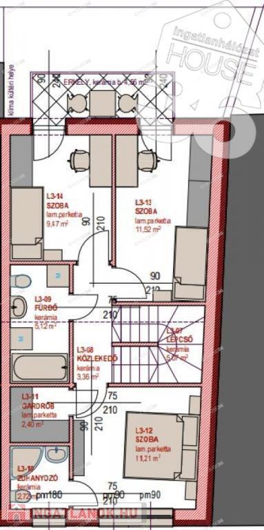 4. lakás: 90,14 m2, terasz: 29,20 m2