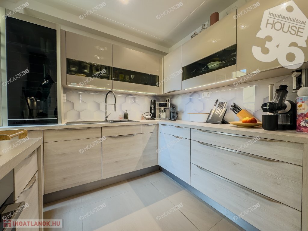A lakás egyik éke a minőségi, teljesen gépesített konyha: