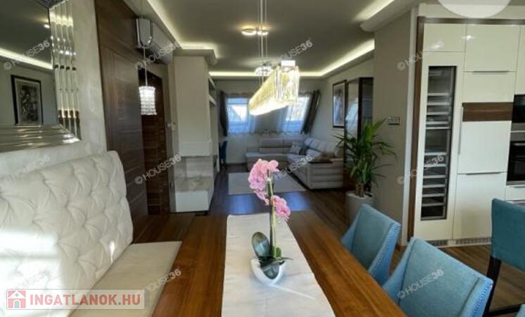 A lakás bruttó 93 m2, lakberendező által kialakított, prémium minőségű, ottmaradó beépített stílusos, egységes bútorzattal, magas színvonalú gépekkel felszerelve!