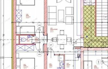Téglaépítésű társasház, tégla belső válaszfalakkal