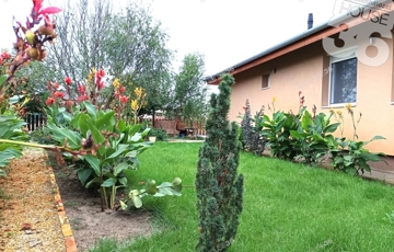 Parkosított kert: A ház körüli kert gyönyörűen gondozott, biztosítva a teljes privát szférát, amelyhez egy játszótér is tartozik.