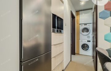 A lakás egyik éke a minőségi, teljesen gépesített konyha: