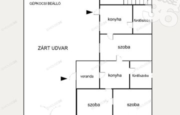-zárt, önálló udvar gépkocsi beállóval!