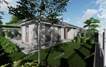 Az összközműves, betonos utcában található 520 m2-es telekre egy 91 m2-es prémium minőségű 1 szintes házat terveztek.
